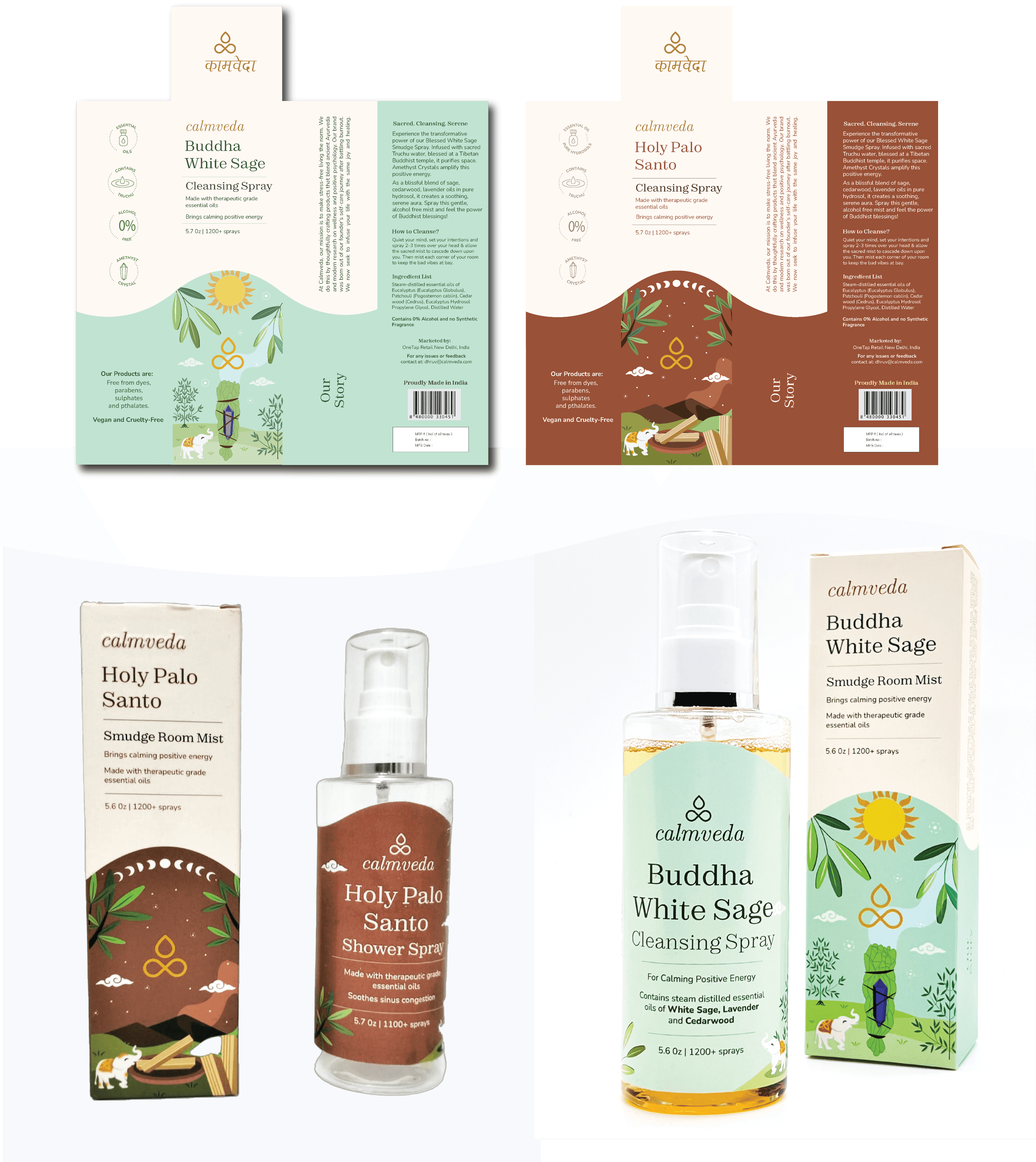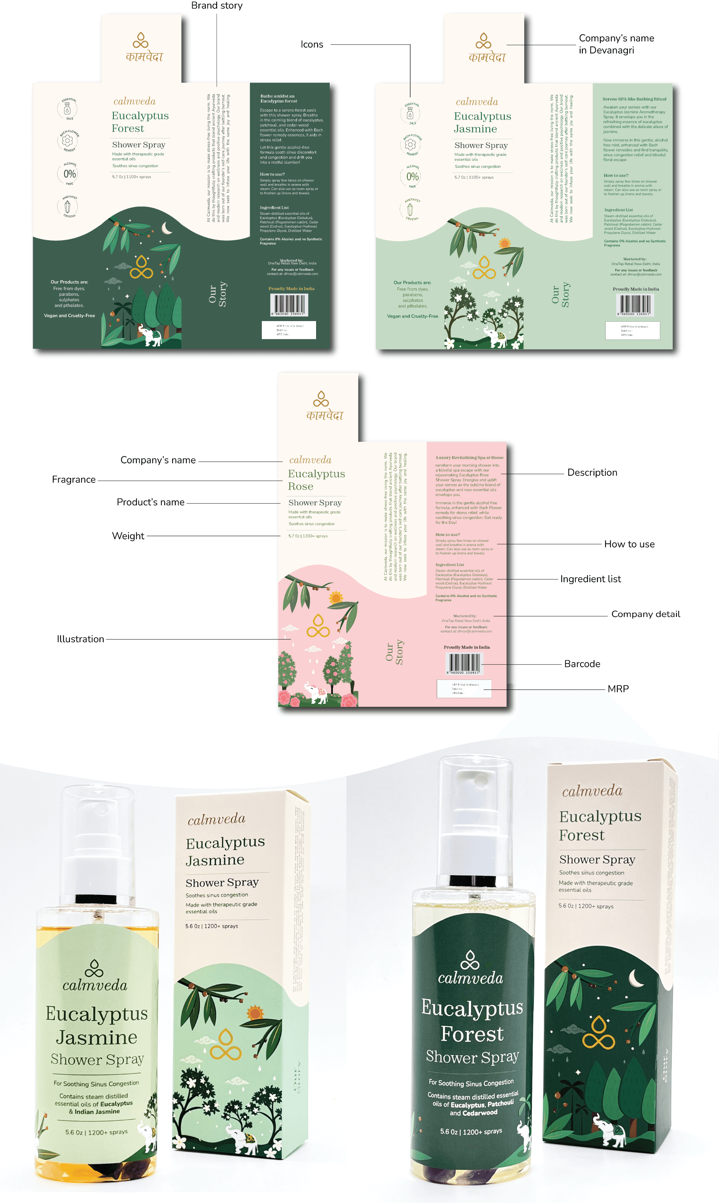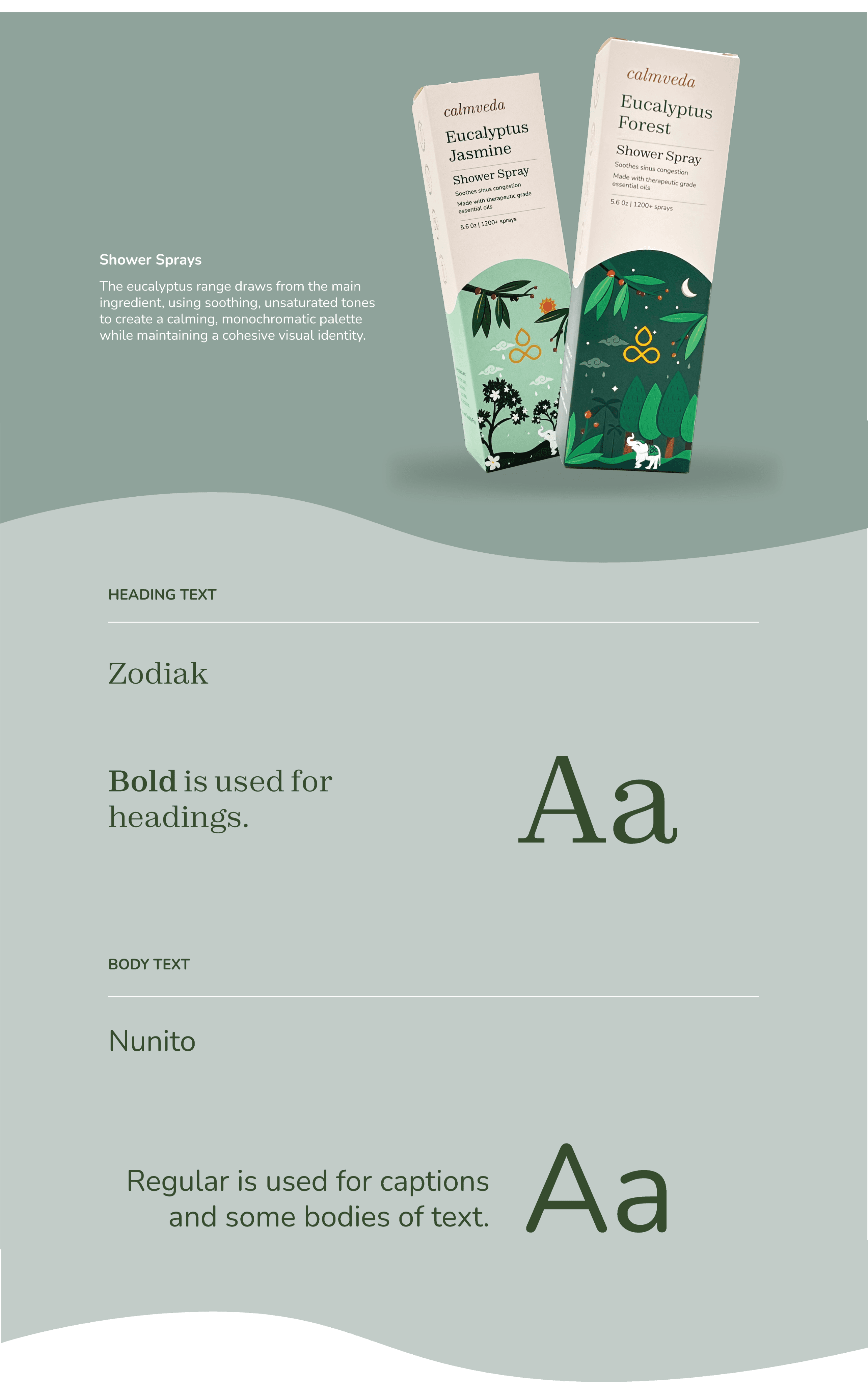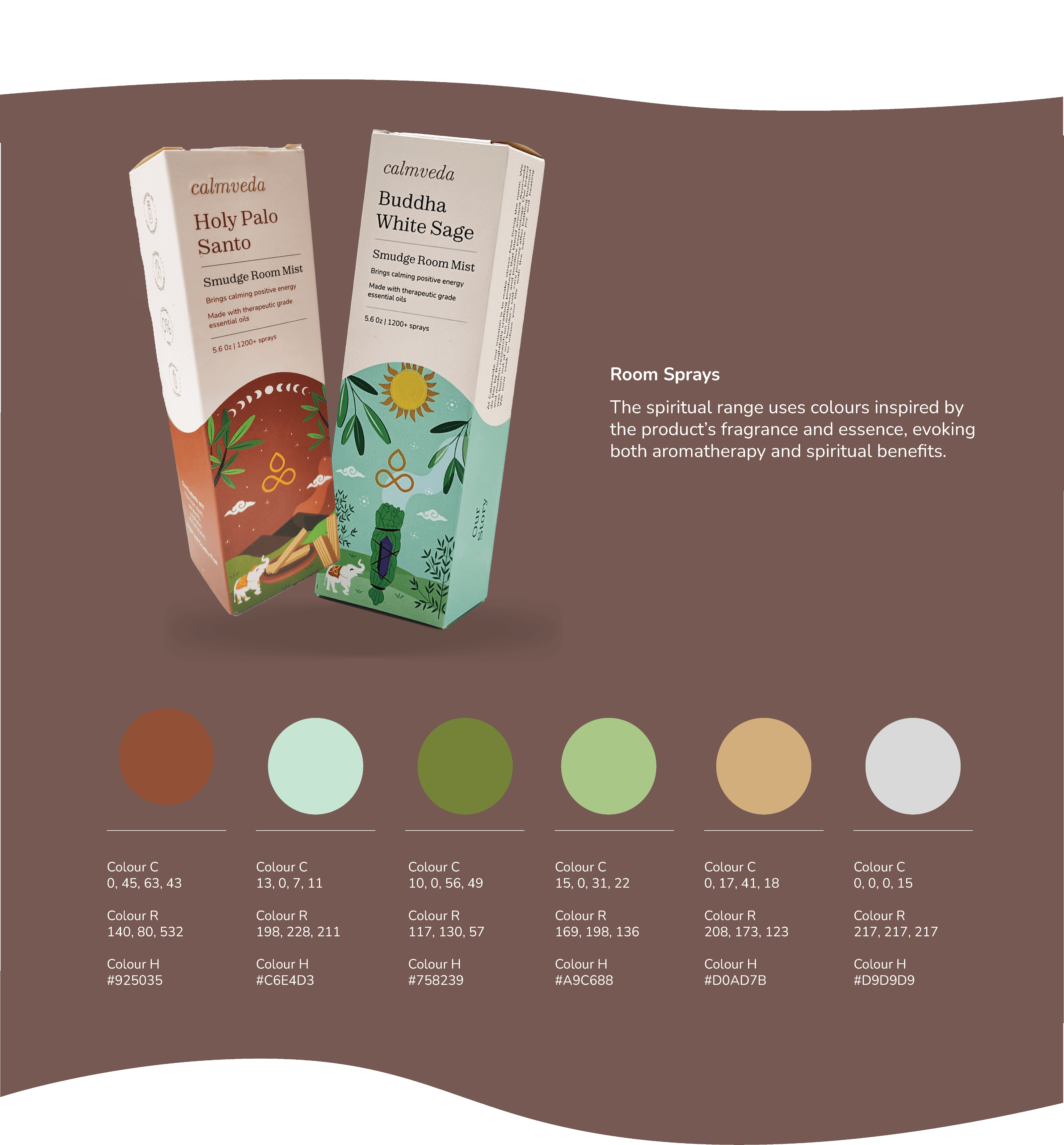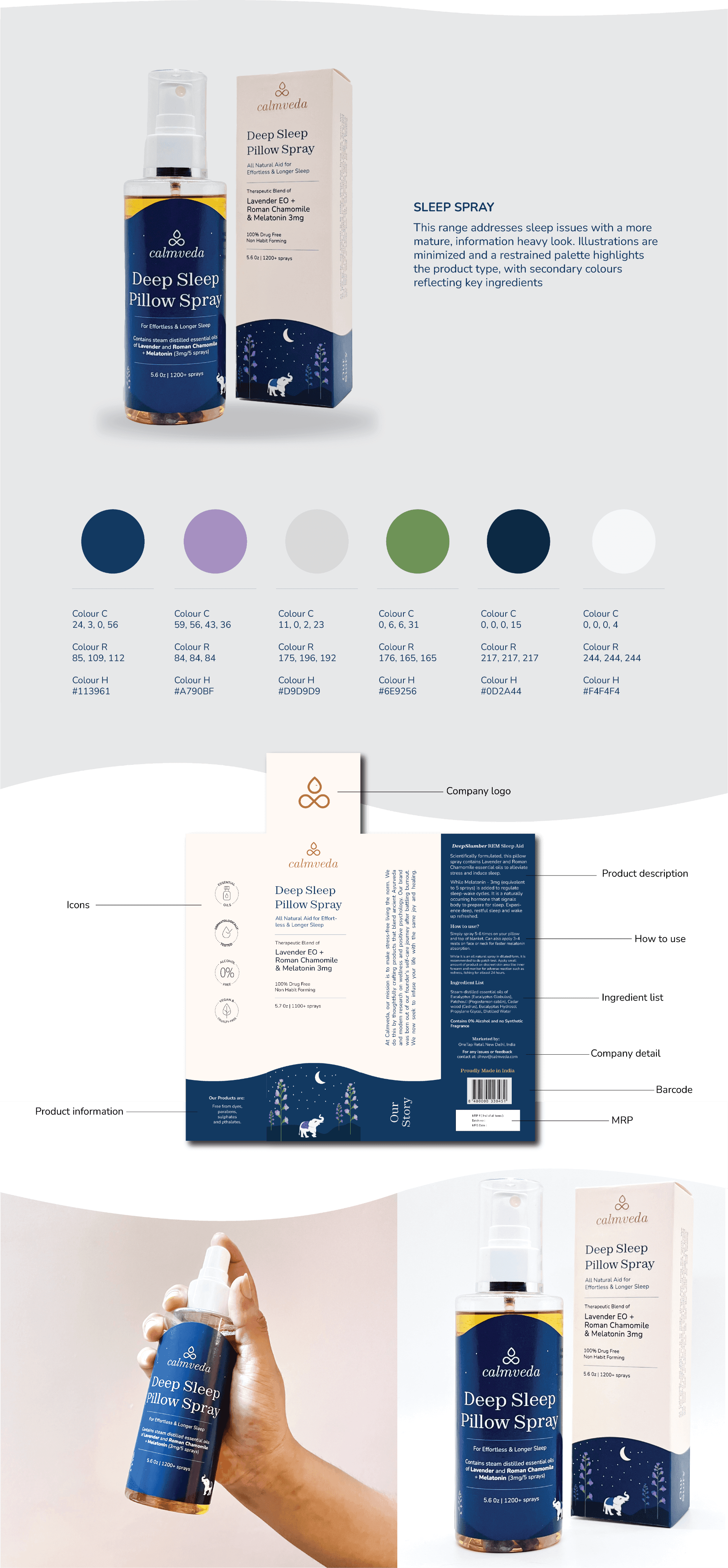 This live project with Calmveda, a USA-based aromatherapy brand, focused on developing cohesive brand guidelines and designing packaging for their new product ranges.