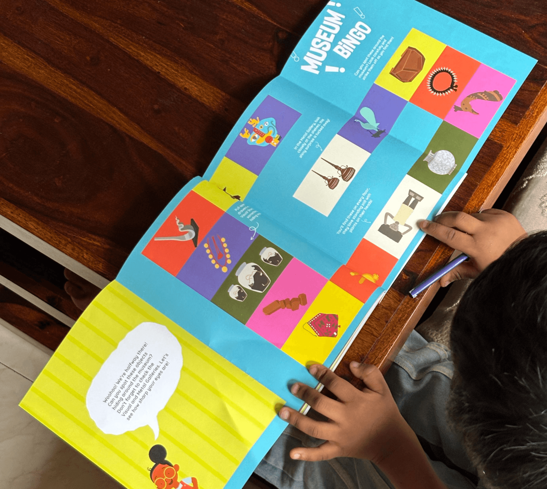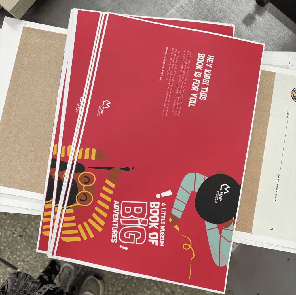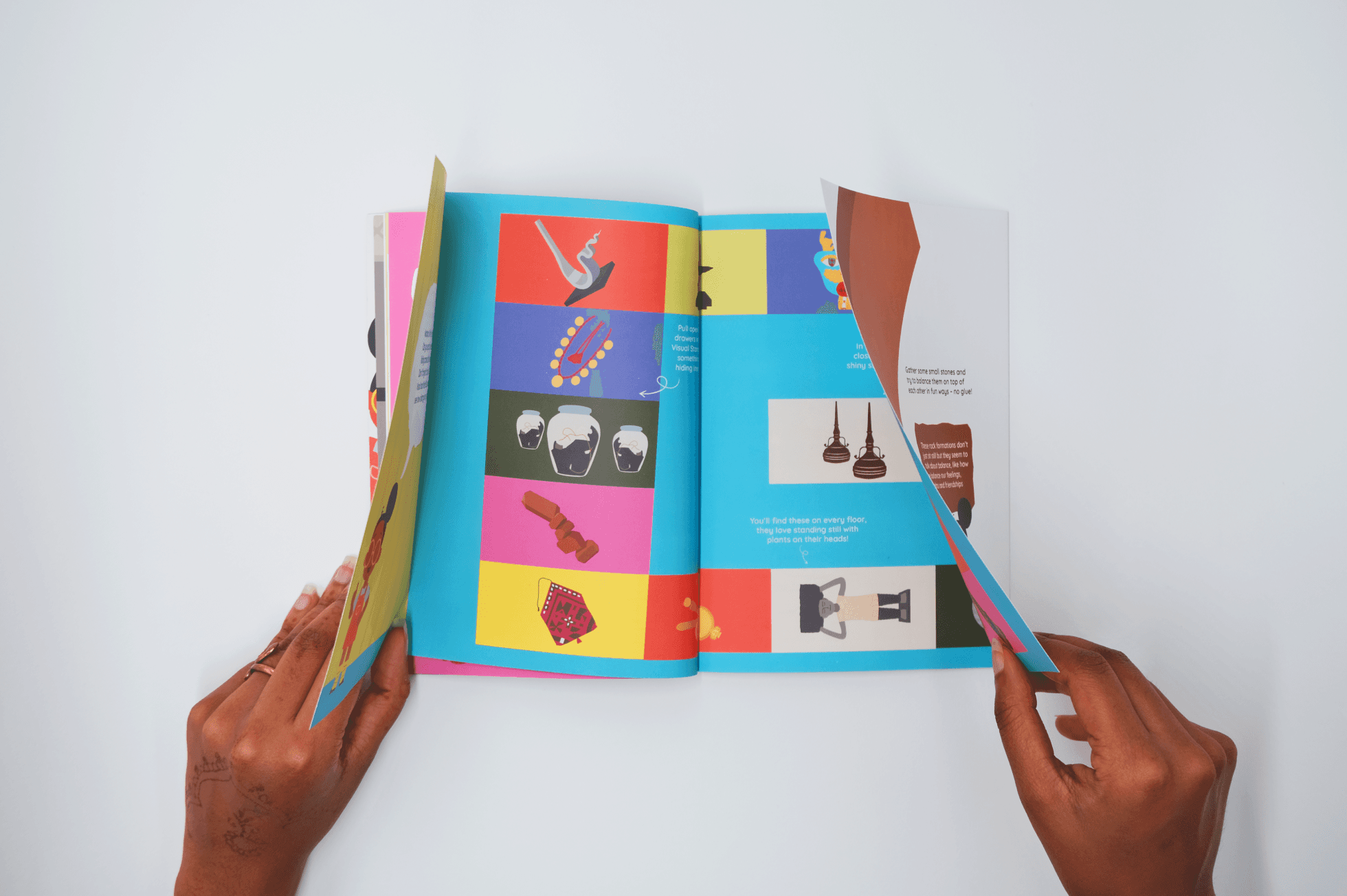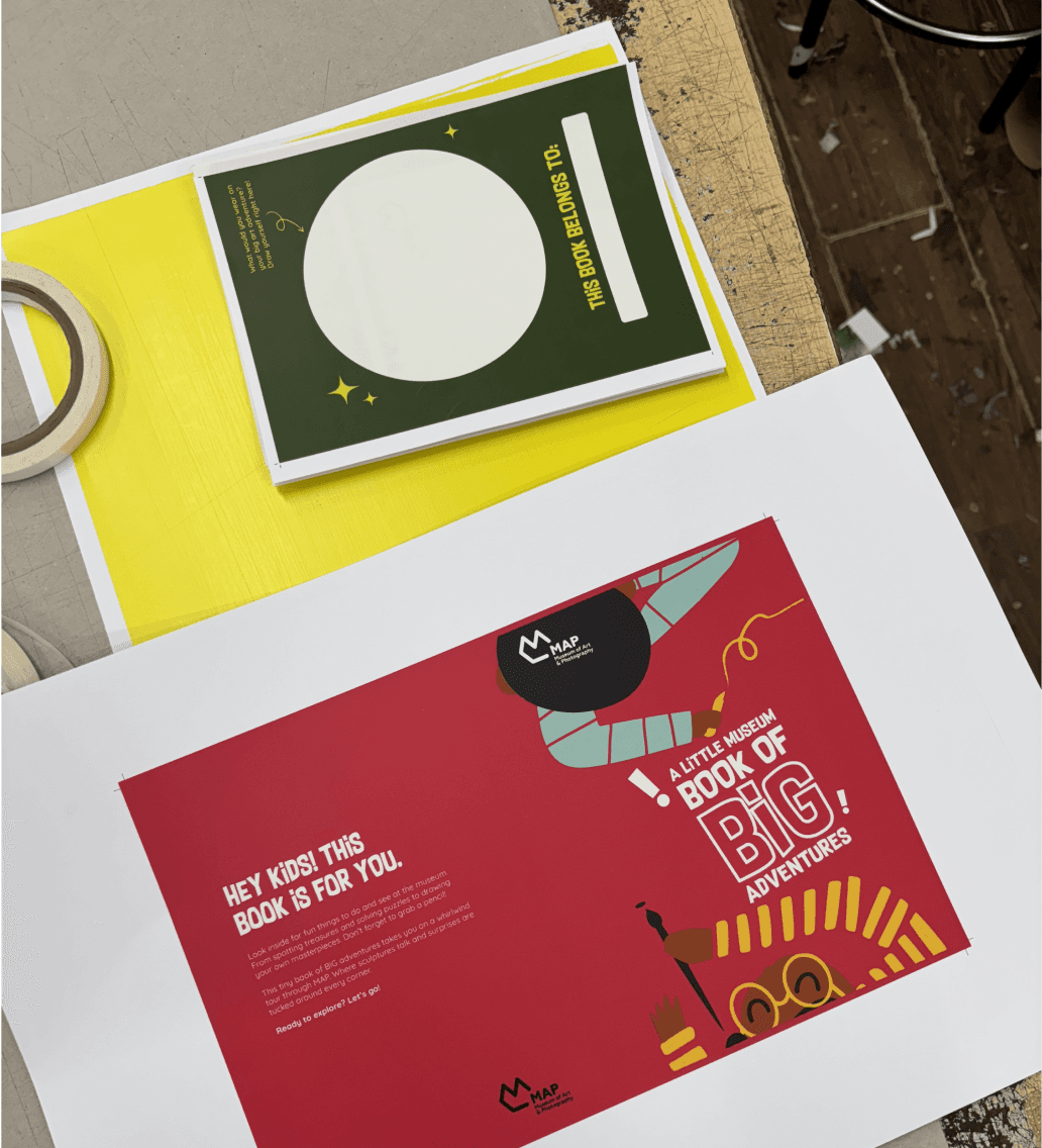 I began by studying MAP’s collection, brand identity and existing museum learning tools. The research focused on how a book could transform the museum space into something engaging and interactive. From this, I identified the key goal: to make the museum experience fun, hands on and personal for kids.