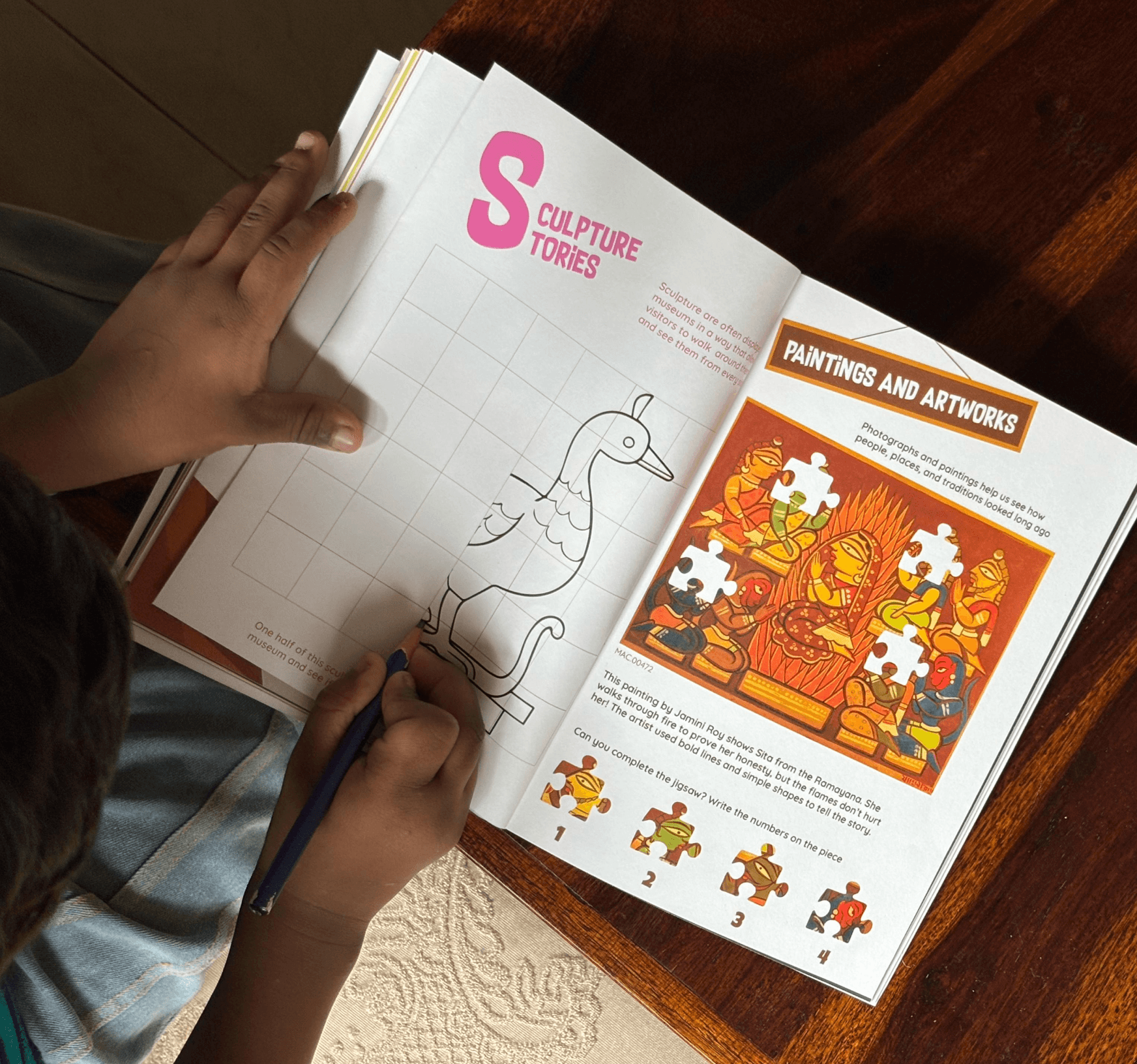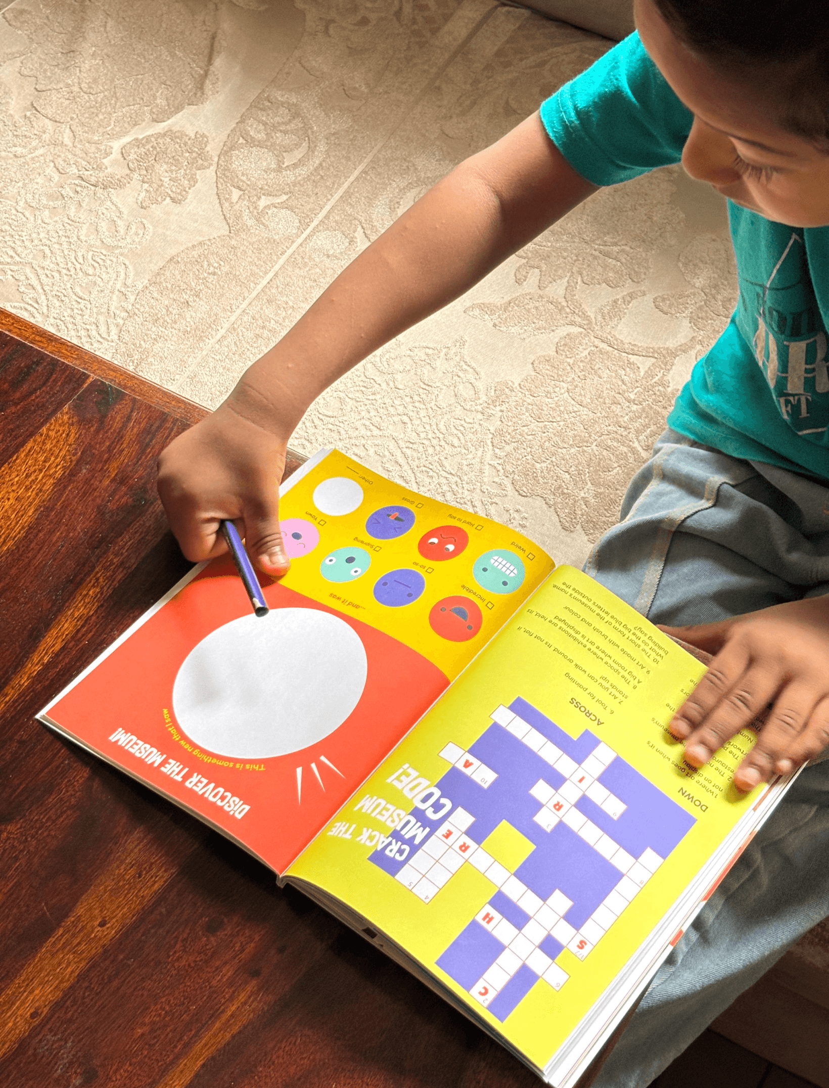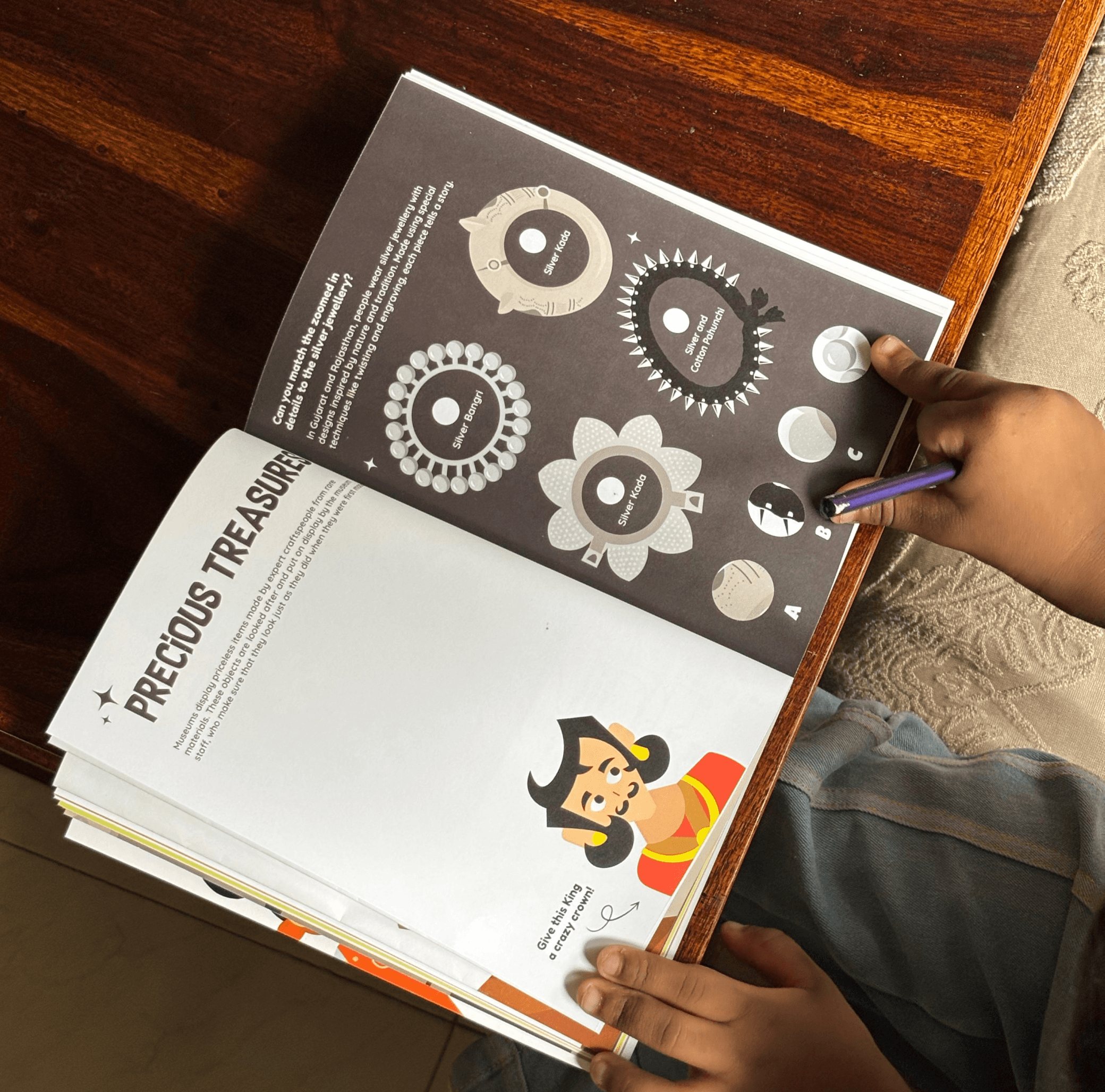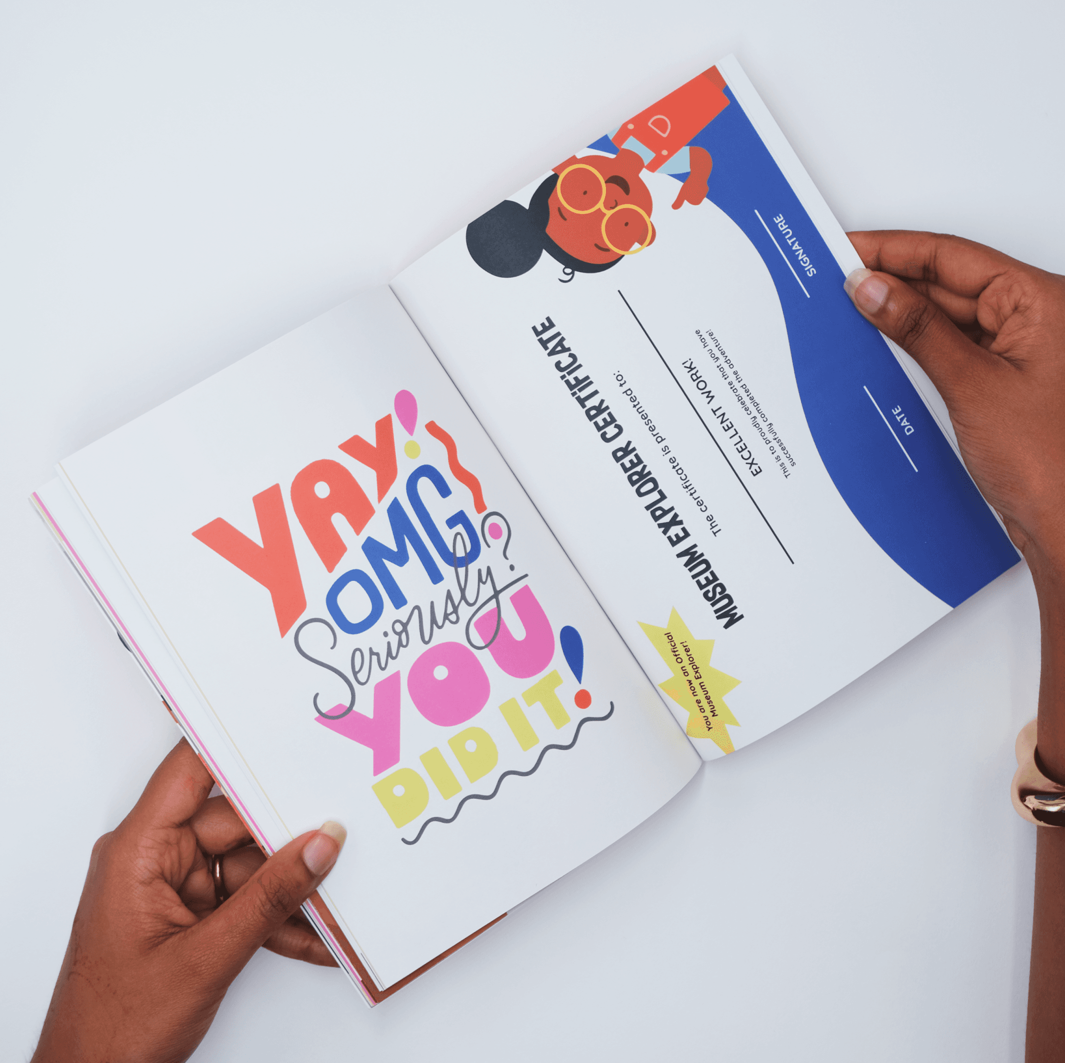 I began by studying MAP’s collection, brand identity and existing museum learning tools. The research focused on how a book could transform the museum space into something engaging and interactive. From this, I identified the key goal: to make the museum experience fun, hands on and personal for kids.