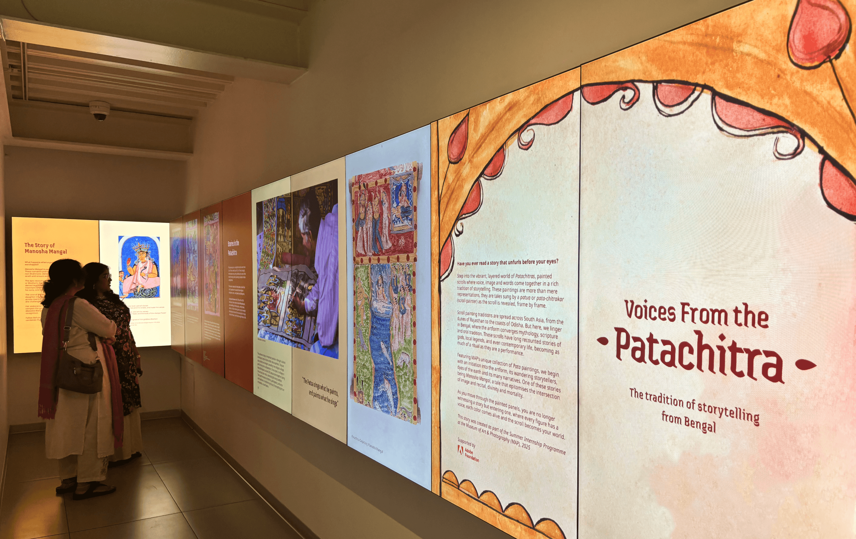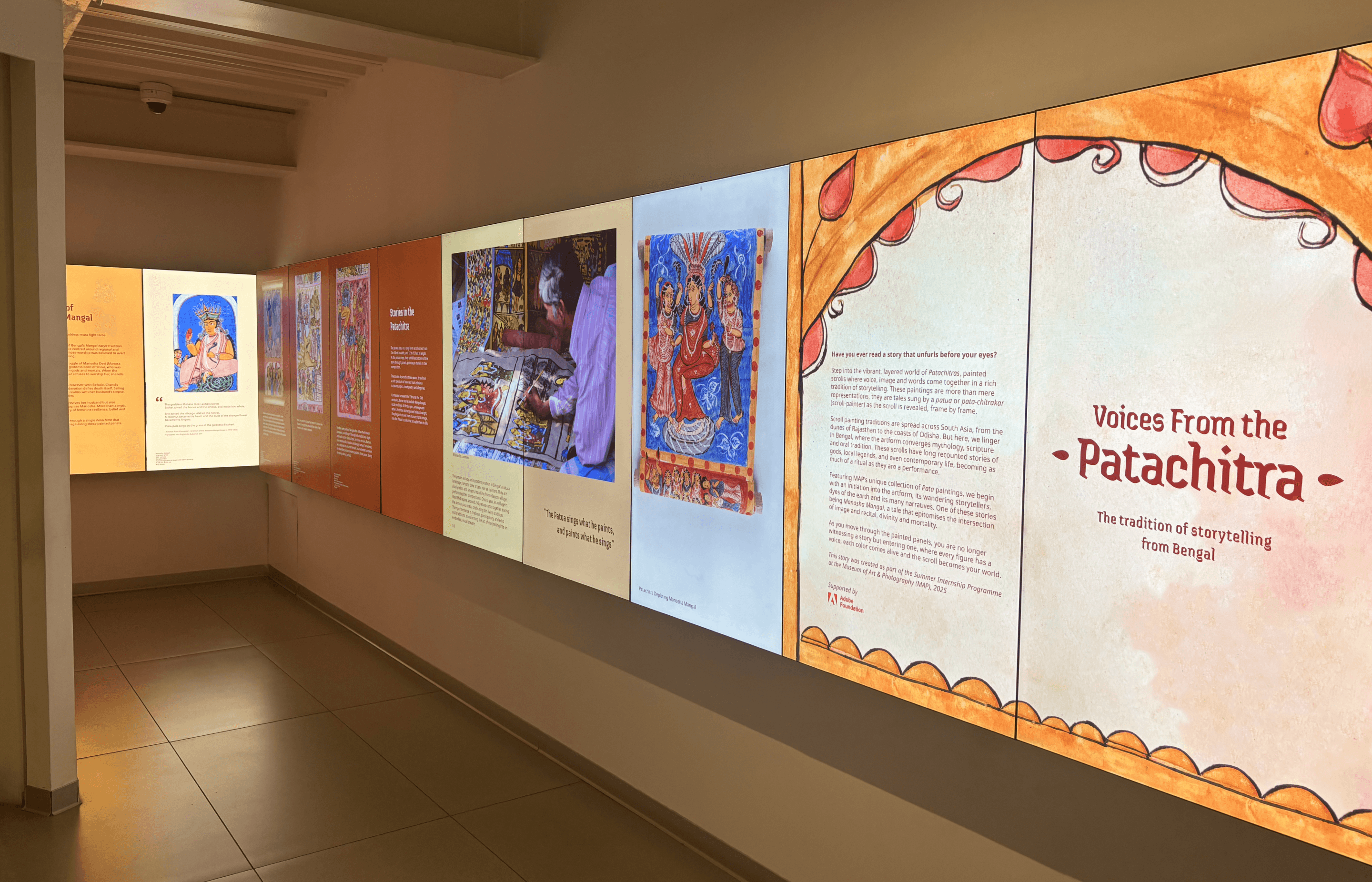 I was selected to join MAP’s Summer Internship Program as part of the Design Team. During my time there, I collaborated with the Exhibition Team to conceptualize and curate a digital exhibition for the Sasken Multimedia gallery. The project focused on storytelling of Bengal Patachitras paired with a thought design language blending the curatorial narrative with engaging visual elements.
