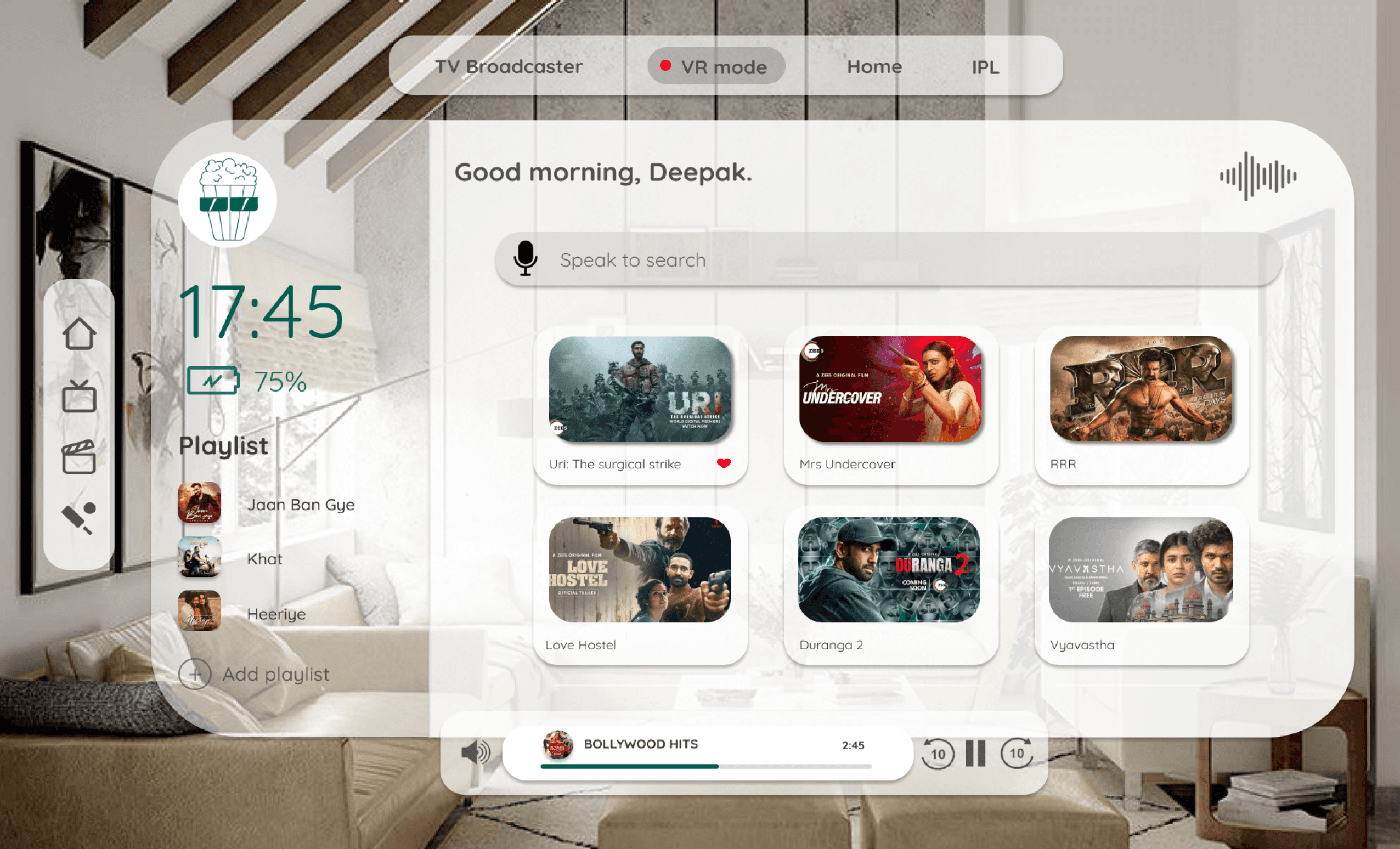 AR/VR system allows the user to listen to music, watch movies from their Wishlist and do much more just through touch gestures and voice recognition.