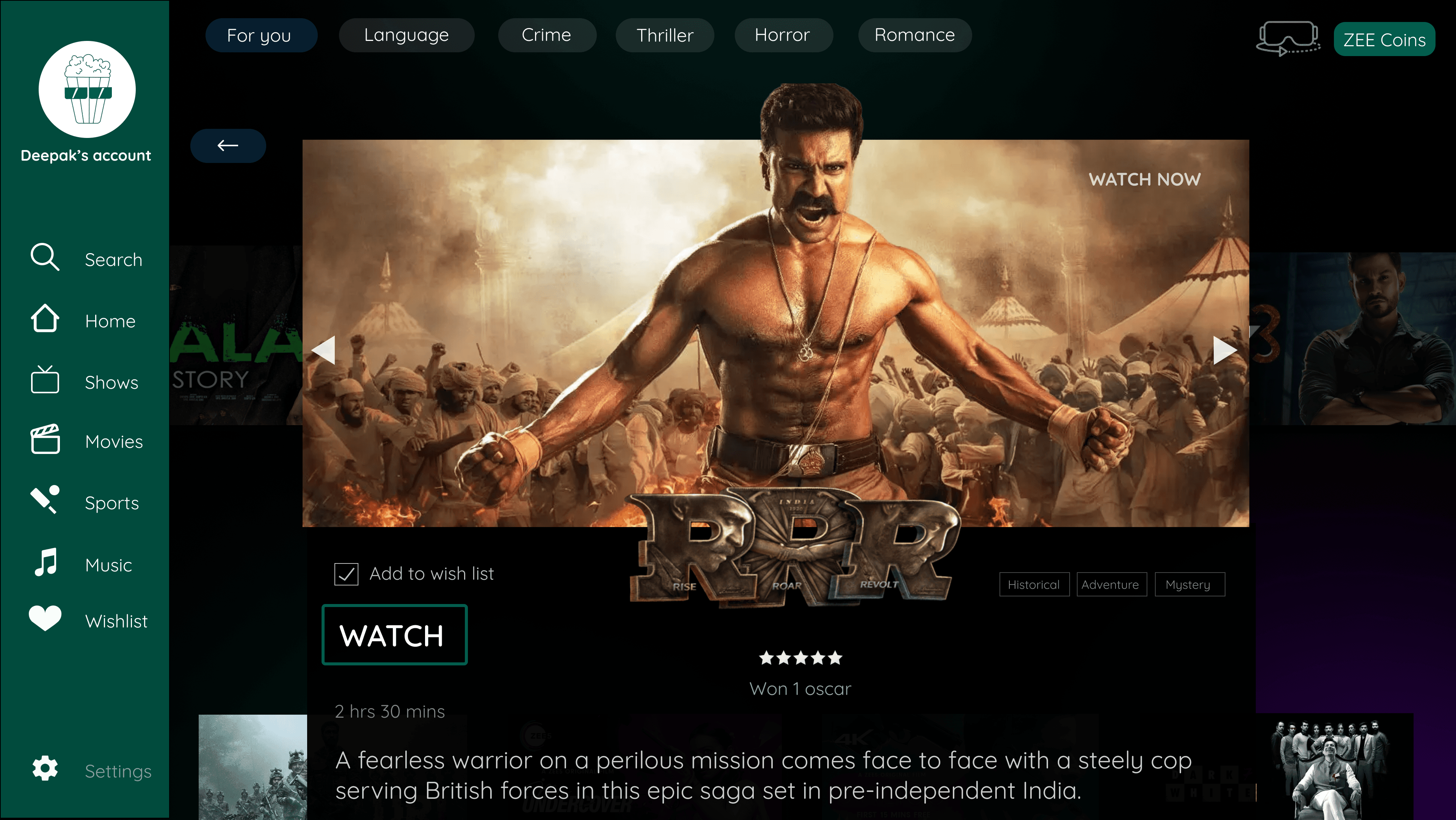 Popcorn Pals is a collaborative feature made specially for family viewing. The Zee5 algorithm finds common content that two or more people will enjoy watching together.