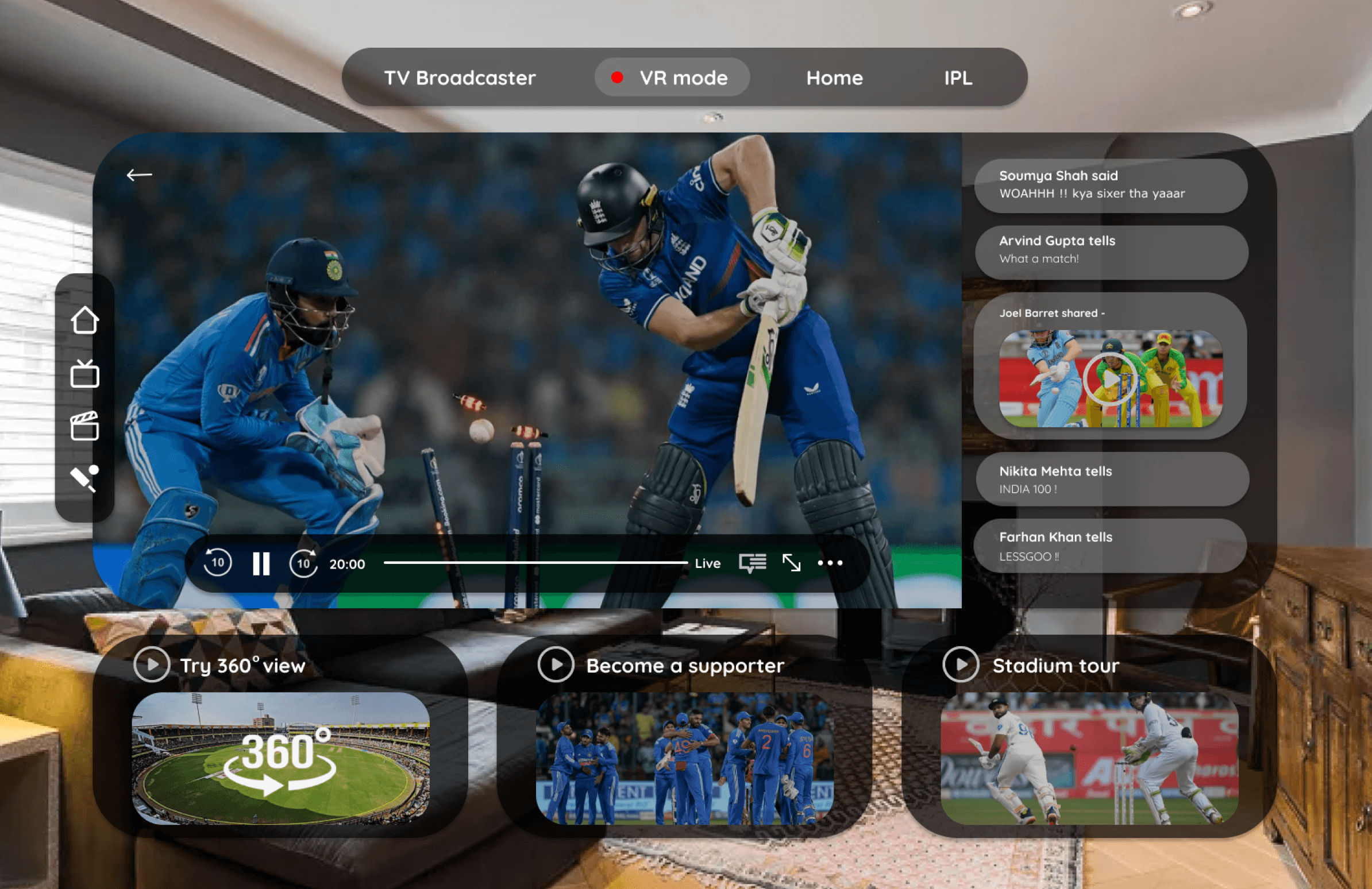 A more holistic viewing experience allows users to immerse themselves in the game through live commentary, stadium tour and 360 degree viewing.