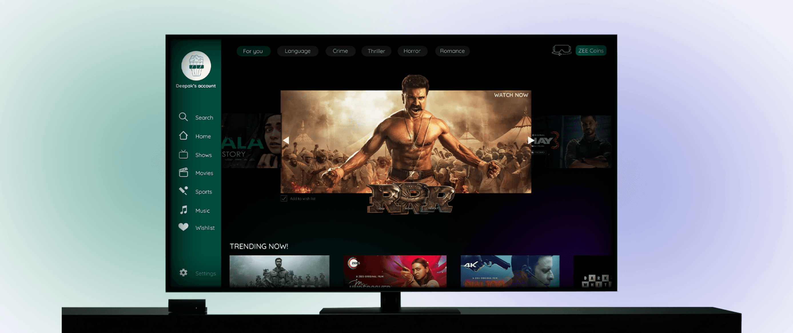 Our aim is to create an immersive family friendly viewing experience for Zee5’s users, both Indian and international. With the use of immerging new technology and by redesigning Zee5’s interface, we would like to show Zee5 as a brand that not only caters to the users needs but also stands as a competitor in the market.